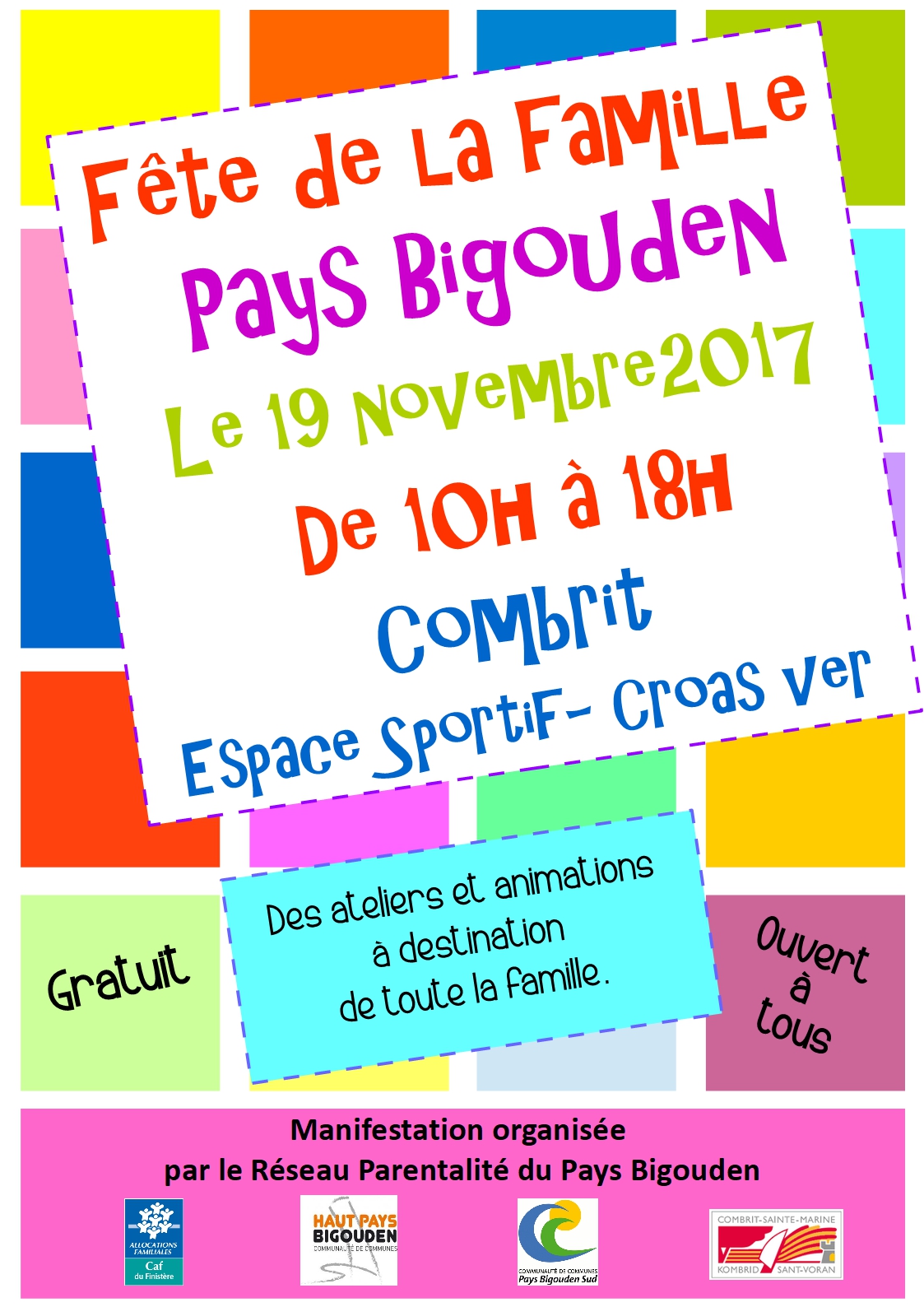Fête de la famille du Pays bigouden, dimanche 19 novembre, de 10 h à 18 h, à l’espace Croas-Ver, à Combrit. Gratuit et ouvert à tous. Restauration sur place, espace change et coin repas aménagés pour les bébés.