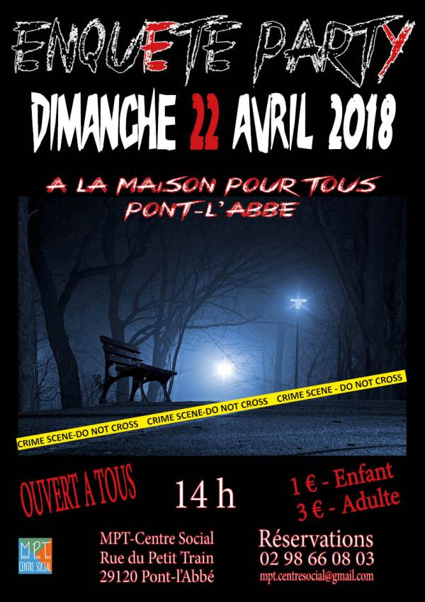 Enquête Party - Un meurtre a été commis ! Mais qui est le coupable ? Un lien avec le passé, avec ce qu’il se tramait ici du temps où le bâtiment était abattoir...Restez alerte face cette découverte! Ne vous laissez pas avoir, venez mener l’enquête, tirer les ficelles, mener des interrogatoires pour reconstituer toute l’histoire.... Lire la Suite →