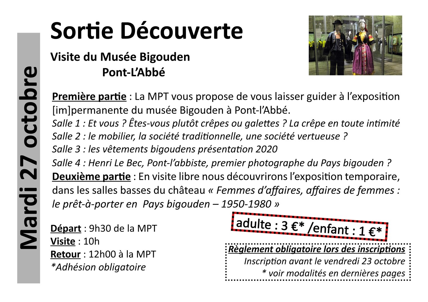 Première partie : La MPT vous propose de vous laisser guider à l’exposition [im]permanente du musée Bigouden à Pont-l’Abbé.
