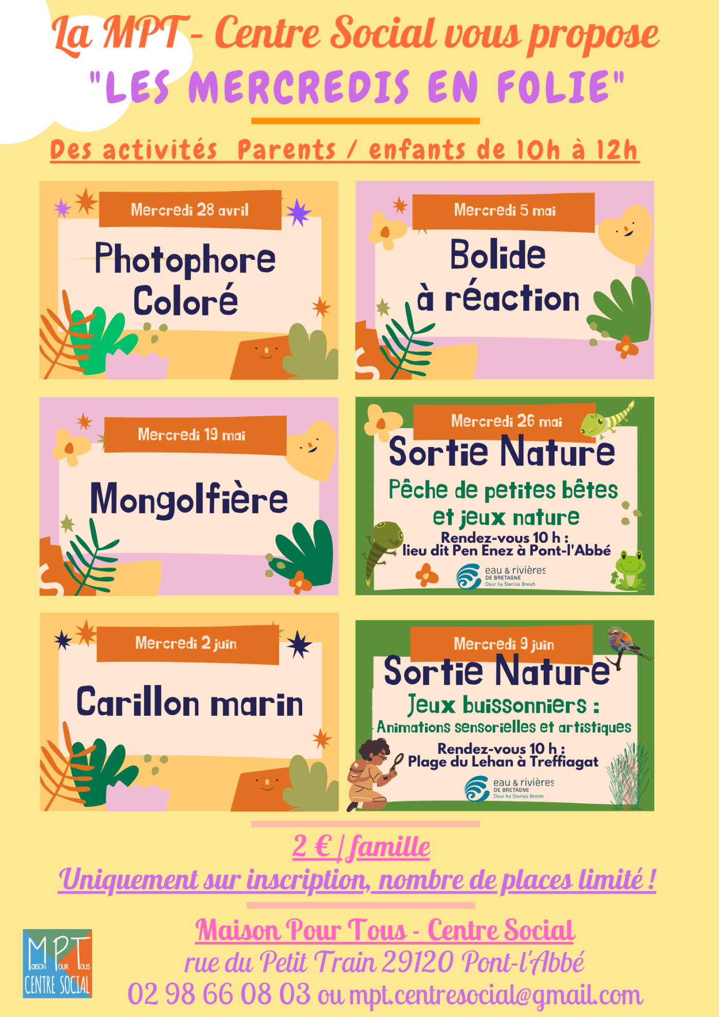 Uniquement sur inscription au 02 98 66 08 03 ou par courriel mpt.centresocial@gmail.com