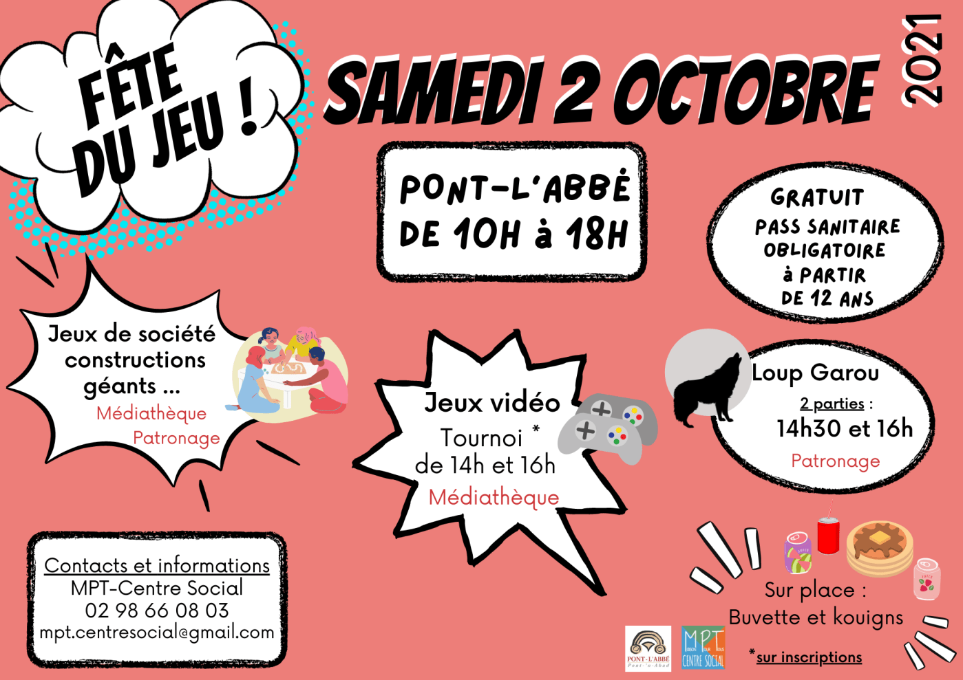 La médiathèque Julien Gracq, l’Espace Jeunes de Pont-l’Abbé et la Maison Pour Tous vous propose la Fête du jeu ! Une journée consacré au jeux de société, jeu de plateau, de carte, de stratégie, de mémoire, de rapidité … de 2 à 102 ans !