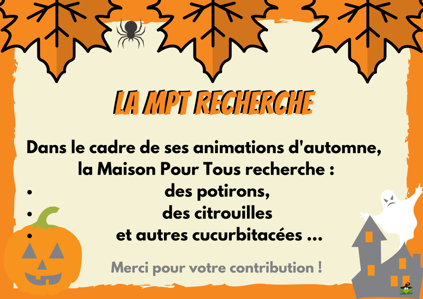 Dans le cadre de ses animations d’automne, la Maison Pour Tous recherche :