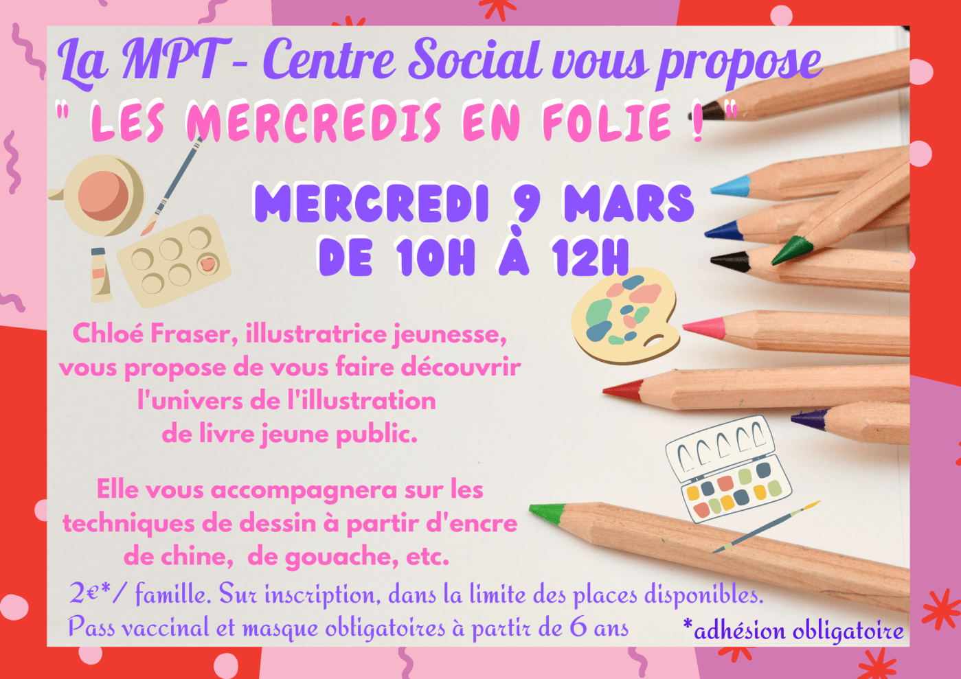 Infos Pratiques : 2€/famille + adhésion obligatoire. Le port du masque obligatoire à partir de 6 ans lors des déplacements et le Pass vaccinal sont obligatoires à partir de 12 ans.