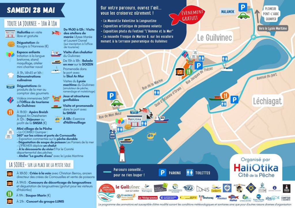 Dans le cadre de la semaine de la pêche et de l’aquaculture en Cornouaille, venez découvrir samedi 28 mai diverses animations festives sur le thème de la Mer (atelier cuisine, visites guidées, démonstration d’hélitreuillage, sans oublier le 5e concours de décorticage de langoustines, etc).