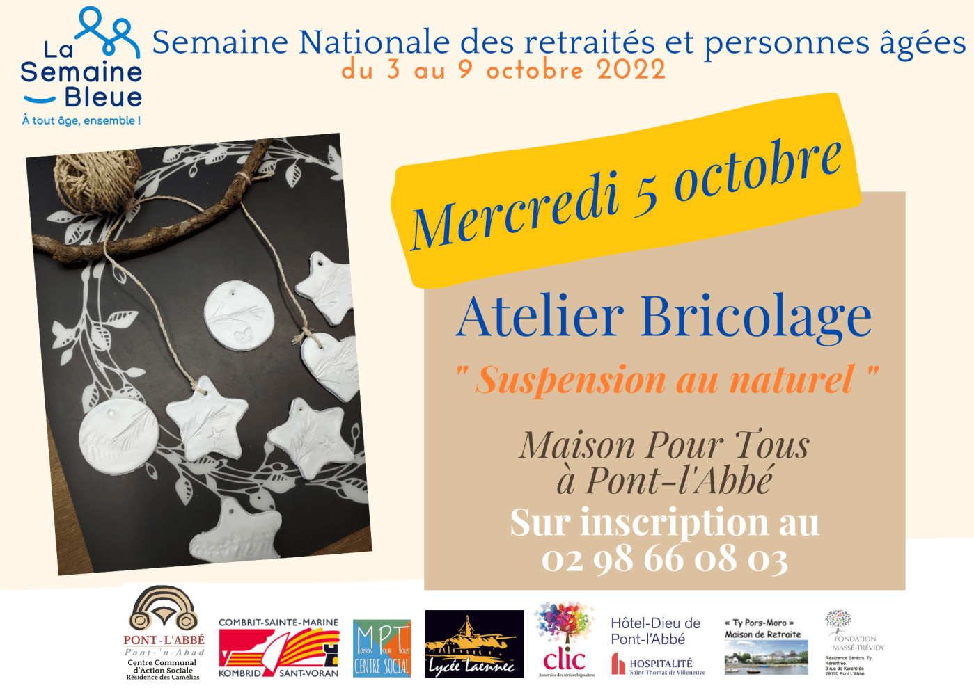 Dans le cadre de la Semaine Nationale des retraités et personnes âgées, la MPT-Centre Social organise un atelier manuel et intergénérationnel. Venez confectionner une suspension au naturel.