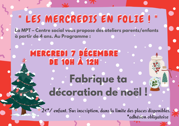 La MPT – Centre social vous propose des ateliers parents/enfants à partir de 4 ans.