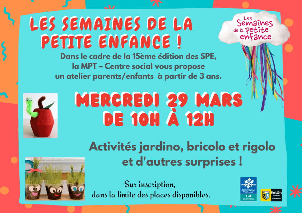 Dans le cadre de la 15ème édition des Semaine de la Petite Enfance, la MPT – Centre social vous propose un atelier parents/enfants à partir de 3 ans.