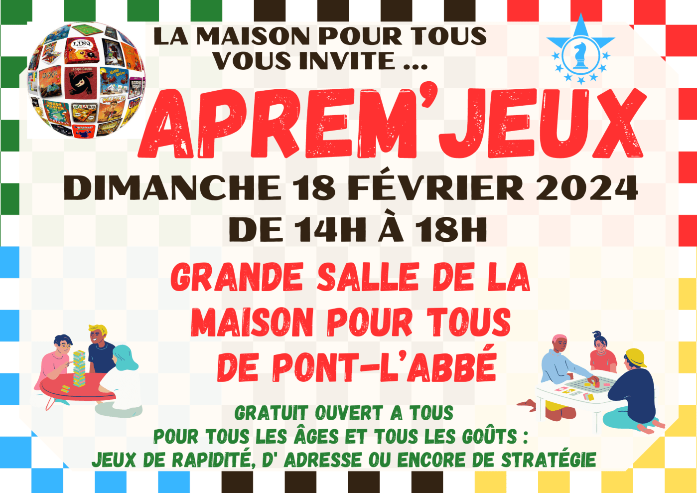 Dimanche 18 février de 14h à 18h. Nous vous attendons nombreux dimanche à partir de 14h pour un moment ludique et de détente ! Ouvert à tous et gratuit.