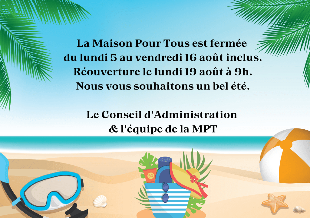 La Maison Pour Tous est fermée du lundi 5 août au mercredi 16 août inclus.