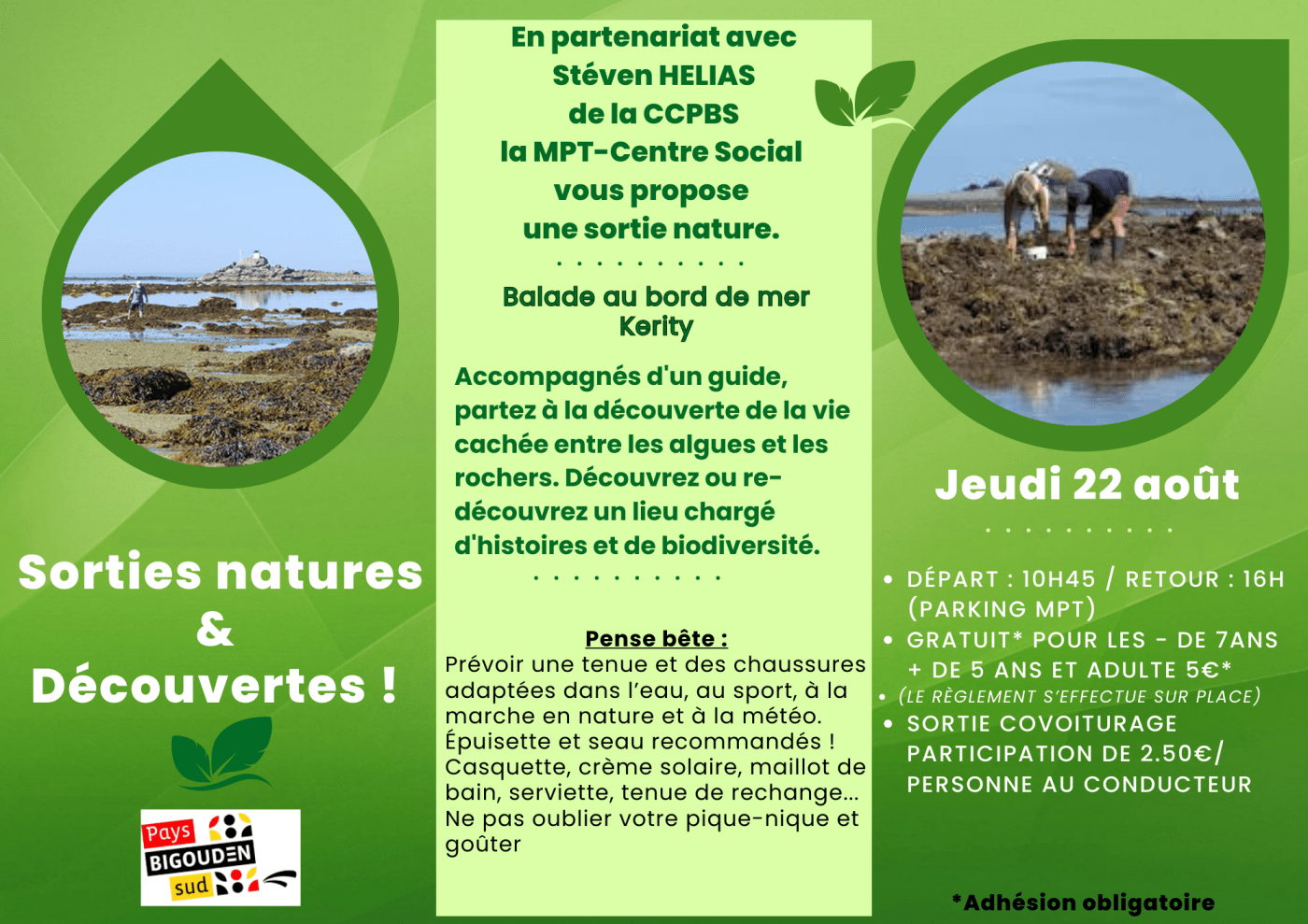 En partenariat avec Stéven HELIAS de la CCPBS la MPT-Centre Social vous propose une sortie nature » Balade au bord de mer Kerity «