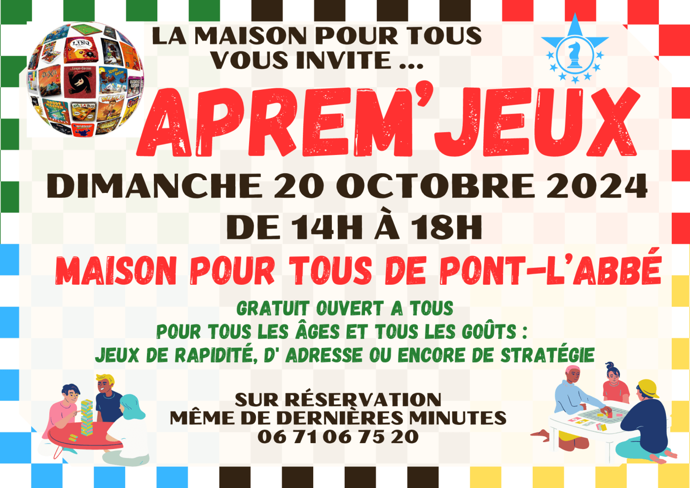 Dimanche 20 octobre de 14h à 18h. Nous vous attendons nombreux dimanche à partir de 14h pour un moment ludique et de détente ! Ouvert à tous et gratuit.