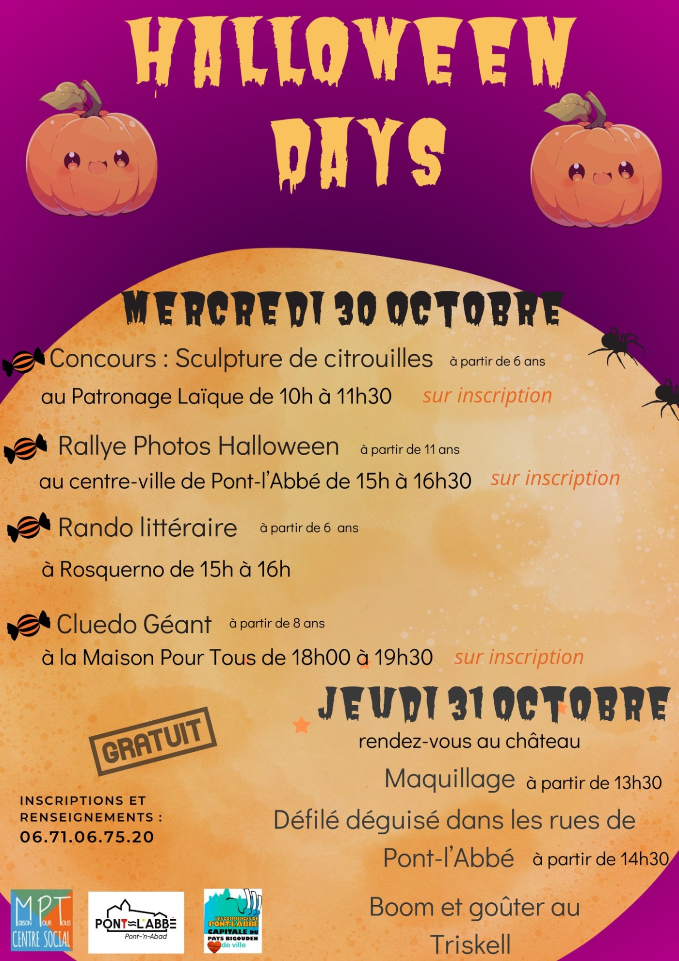 L’Espace Jeunes, L’accueil de Loisirs et la Mpt Pont L’abbé de Pont-L’Abbé organisent les Halloween Day’s !