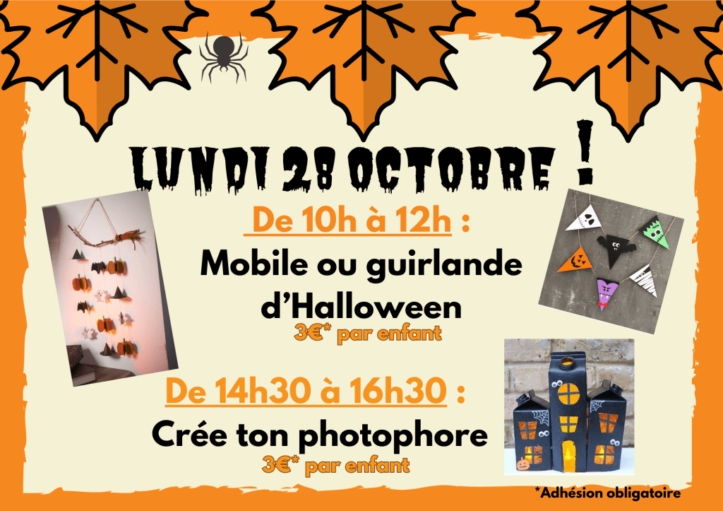 De 10h à 12h : Mobile ou guirlande d’Halloween – 3€/enfant*