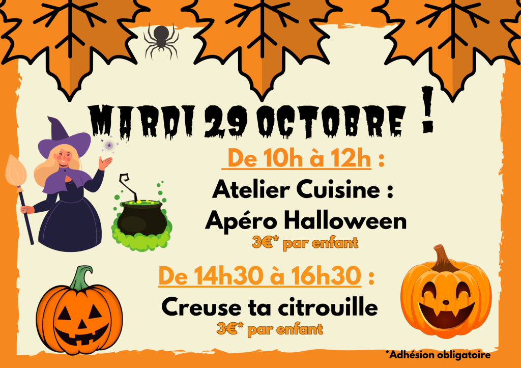 De 10h à 12h : Atelier cuisine : Apéro Halloween – 3€/enfant