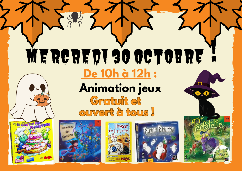 De 10h à 12h : Animation jeux – Gratuit et ouvert à tous !