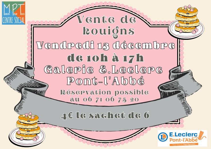 La MPT vous propose une ventre de Kouigns dans la Galerie de E.Leclerc de Pont-l’Abbé de 10h à 17h