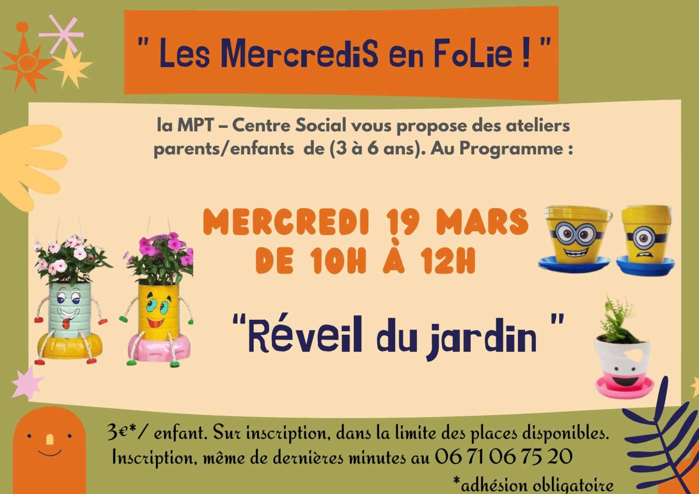 La MPT – Centre Social vous propose des ateliers parents/enfants de (3 à 6 ans). Au Programme :