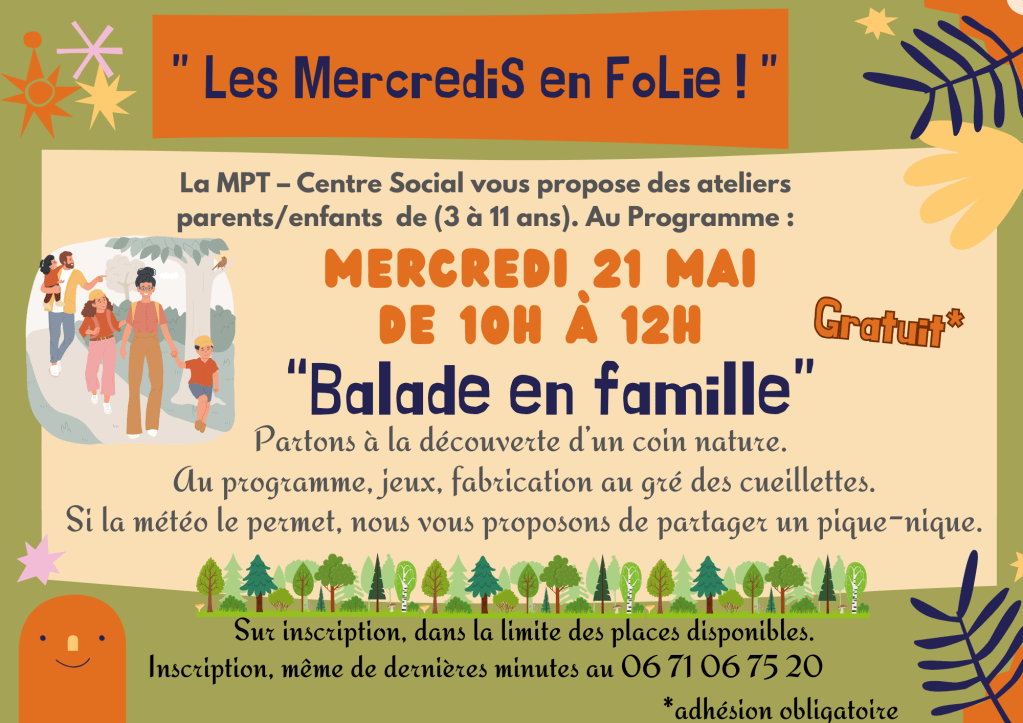 La MPT – Centre Social vous propose des ateliers parents/enfants de (3 à 11 ans). Au Programme :