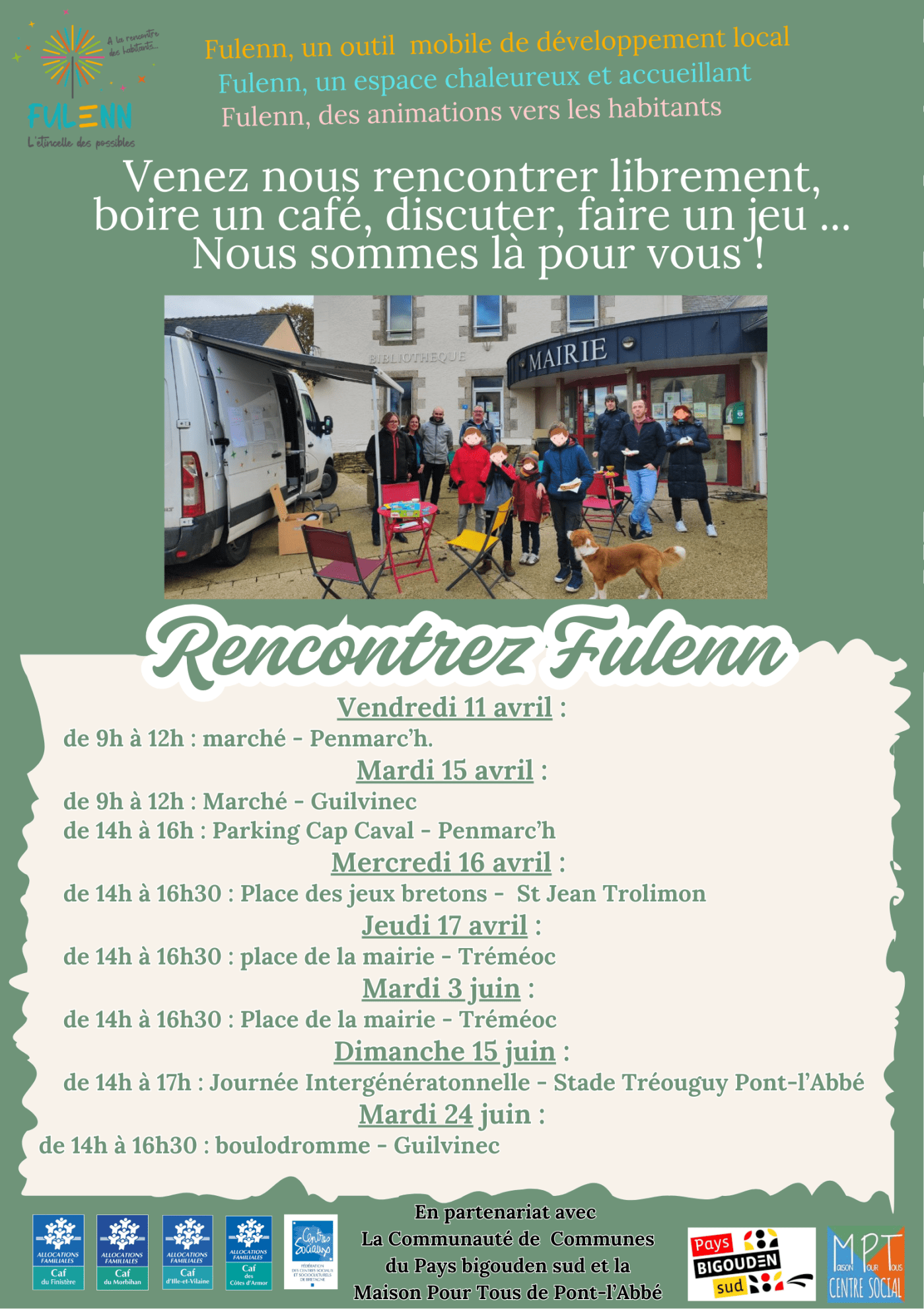 - Mardi 15 avril : de 9h à 12h : Marché – Guilvinec ET de 14h à 16h : Parking Cap Caval – Penmarc’h