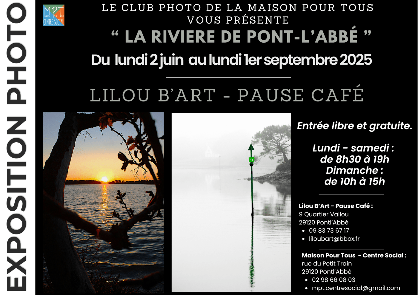 Exposition du Club Photo de la MPT du lundi 2 juin au lundi 1er septembre « Lilou B’Art » au Quartier Valou à Pont-l’Abbé.