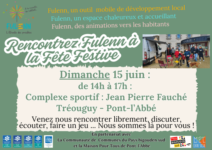 Venez rencontrer « Fulenn-l’étincelle des possibles » à la Fête Festive organisée par le Conseil Municipal des jeunes dimanche 15 juin 2025 de 14h à 17h au Complexe sportif : Jean Pierre Fauché à Tréouguy Pont-L’Abbé.