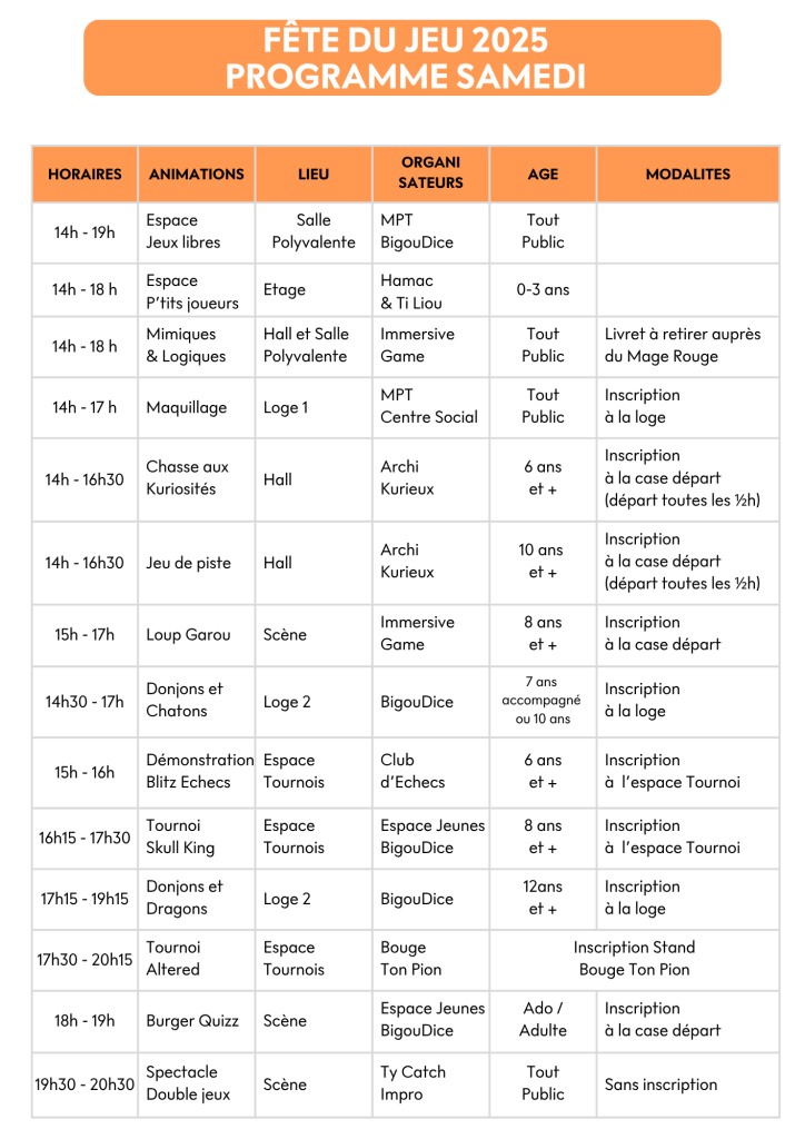 Organisée par la MPT Centre Social – Pont l’abbé, Ville de Pont-l’Abbé et le LE TRISKELL – Centre Culturel, avec le soutien de ses partenaires : Bigoudice, Hamac et Trampoline | Pont-l’Abbé, Association Petite Enfance du Pays Bigouden Ti Liou et avec la participation de TY CATCH IMPRO, Bouge Ton Pion, Les Archi Kurieux, Immersiv’Game