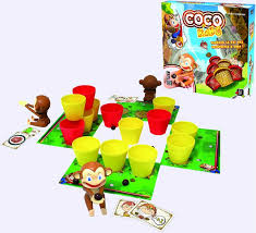 But du jeu : Le but du jeu est d’être le premier à construire sur son plateau, une pyramide composée de 6 coupes. Pour y parvenir, chaque joueur possède un singe lanceur, 8 noix de coco et 2 cartes spéciales qu’il peut jouer durant son tour