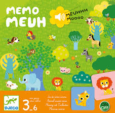 But du jeu : Memo Meuh invite les joueurs à retourner chacun leur tour une carte face cachée qui dévoile un animal puis à appuyer sur la pastille sonore correspondant sur le plateau. Le chat fait-il bien miaou ? Si oui, c’est gagné et le joueur remporte la carte ! Si non, on remet la carte face cachée au même endroit. Au fil des tours, les joueurs stimulent leur mémoire pour se souvenir de l’emplacement des sons et des cartes. Un jeu ludique et convivial qui permet de se familiariser aux animaux et à leurs cris !