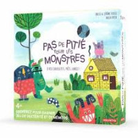 But du jeu : Pas de pitié pour les monstres est un jeu coopératif dans lequel les joueurs font équipe pour faire tomber les monstres avant que tous les jetons ne soient épuisés. Ouvrez la boîte, dépliez les rabats pour construire une maison, et placez les monstres dans le jardin. L’un d’entre eux pénètre dans la première pièce… Vite ! Le premier joueur lance le dé et pioche un jeton. Il doit lancer une chaussette sur le monstre en fermant un œil. Une fois le monstre à terre, passez à la deuxième pièce…Pour gagner, faites tomber le dernier monstre avant d’avoir épuisé tous les jetons !