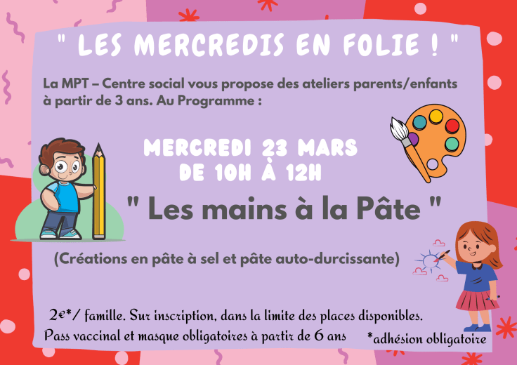 La MPT propose aux parents et enfants (dès 3 ans) de partager un moment de découverte et de plaisir culinaire. les recettes sont inspirées par la saisonnalité des produits et des fêtes culturelles et traditionnelles. Pour le premier atelier de la saison ce sont les pâtes qui sont mises a l’honneur !