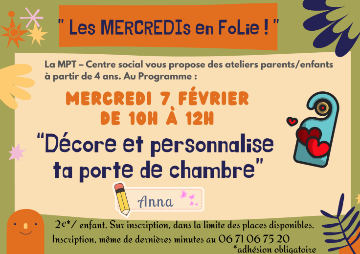 Mercredi 7 février 2024 : Décore et personnalise ta porte de chambre ! »