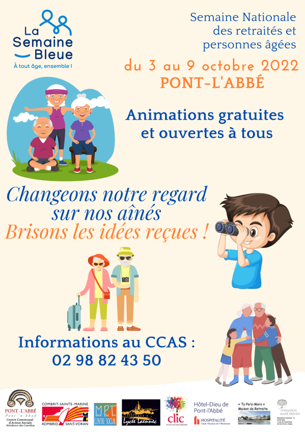 Dans le cadre de la Semaine Nationale des retraités et personnes âgées, le CCAS de Pont-l'Abbé organise une semaine dédiée à nos aînés, en partenariat avec le CCAS de Combrit, la Maison Pour Tous - Centre Social, le Lycée Laënnec, le CLIC du Pays Bigouden, l'Hôtel Dieu de Pont-l'Abbé, Ty Pors Moro, la résidence séniors... Lire la Suite →
