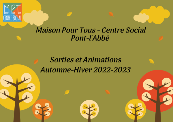 Le nouveau programme des animations automne-hiver 2022-2023 de la MPT est dès à présent disponible à l’accueil. Vous pouvez également le télécharger dans l’onglet « Documents ». L’accueil est ouvert du lundi au vendredi de 9h à 12h30 et de 13h30 à 17h30. Cliquez ICI pour télécharger le programme en PDF