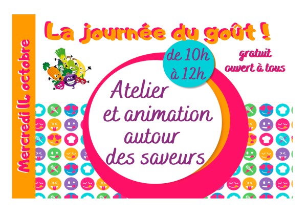 Atelier et animation autour des saveurs Mercredi 14 octobre de 10h à12h / Gratuit et ouvert à tous !