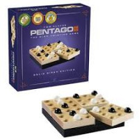 But du jeu : Pentago est un jeu suédois composé de 4 carrés de bois présentant chacun 9 alvéoles (3×3) Ces carrés sont eux-même disposés de façon à former un grand carré de 6×6. Le premier joueur qui parvient à aligner 5 billes (avant ou après le mouvement) a gagné.